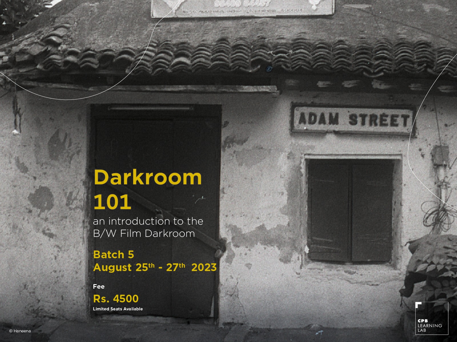 Workshop Cost - Rs 4,500 per person for Darkroom 101